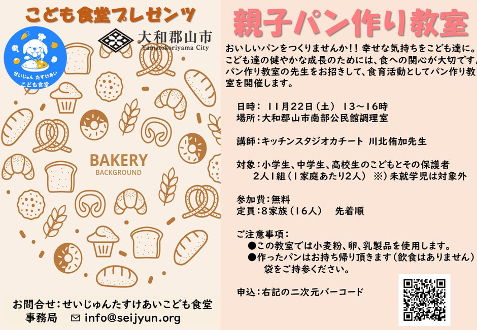 おいしいパンをつくりませんか!! 幸せな気持ちをこども達に。